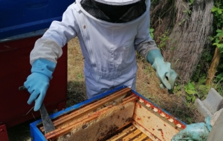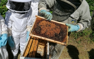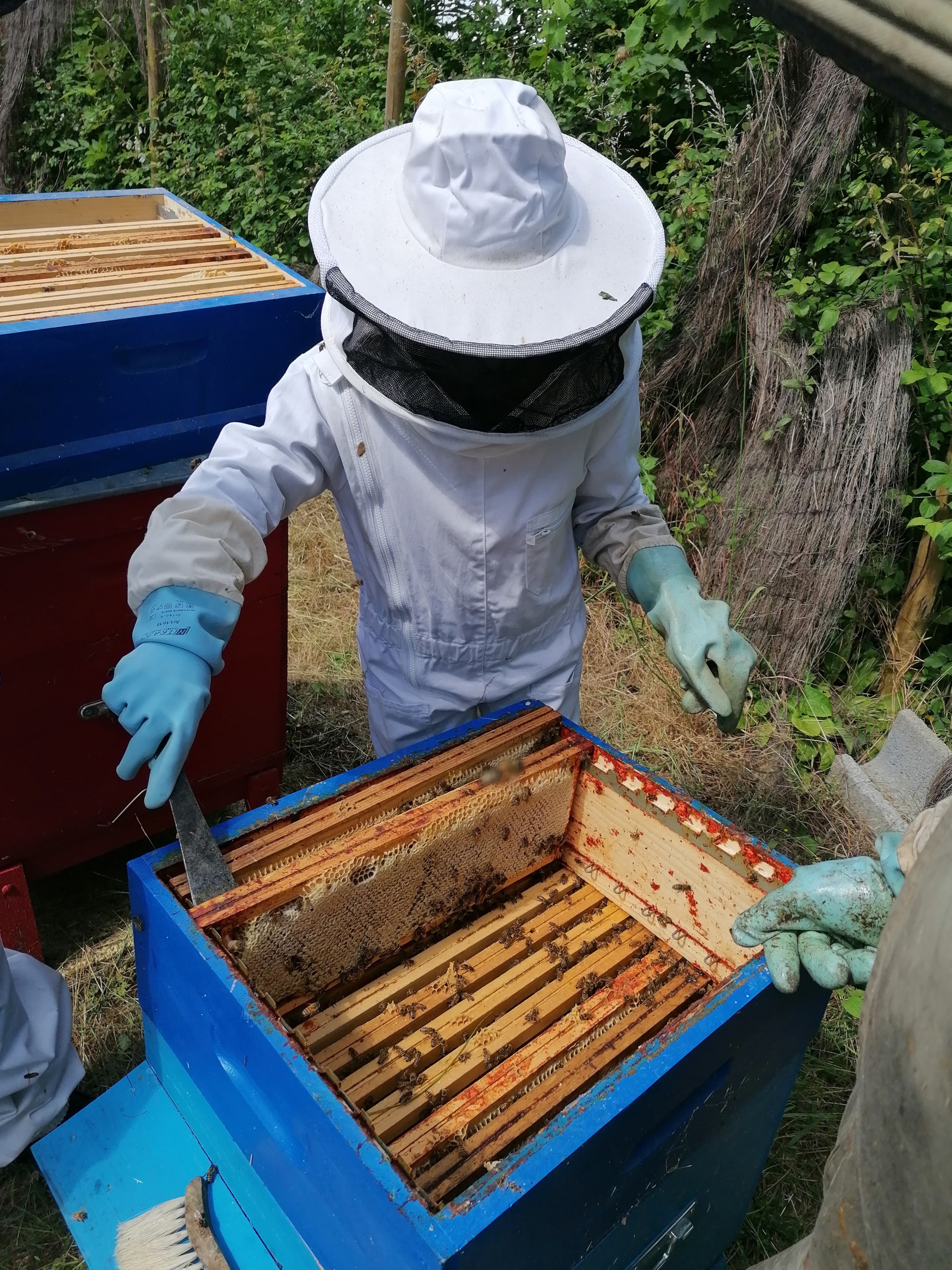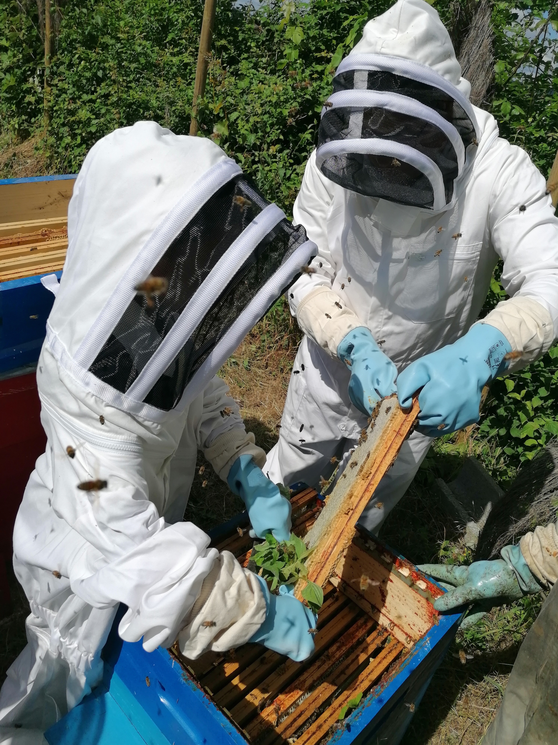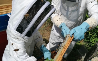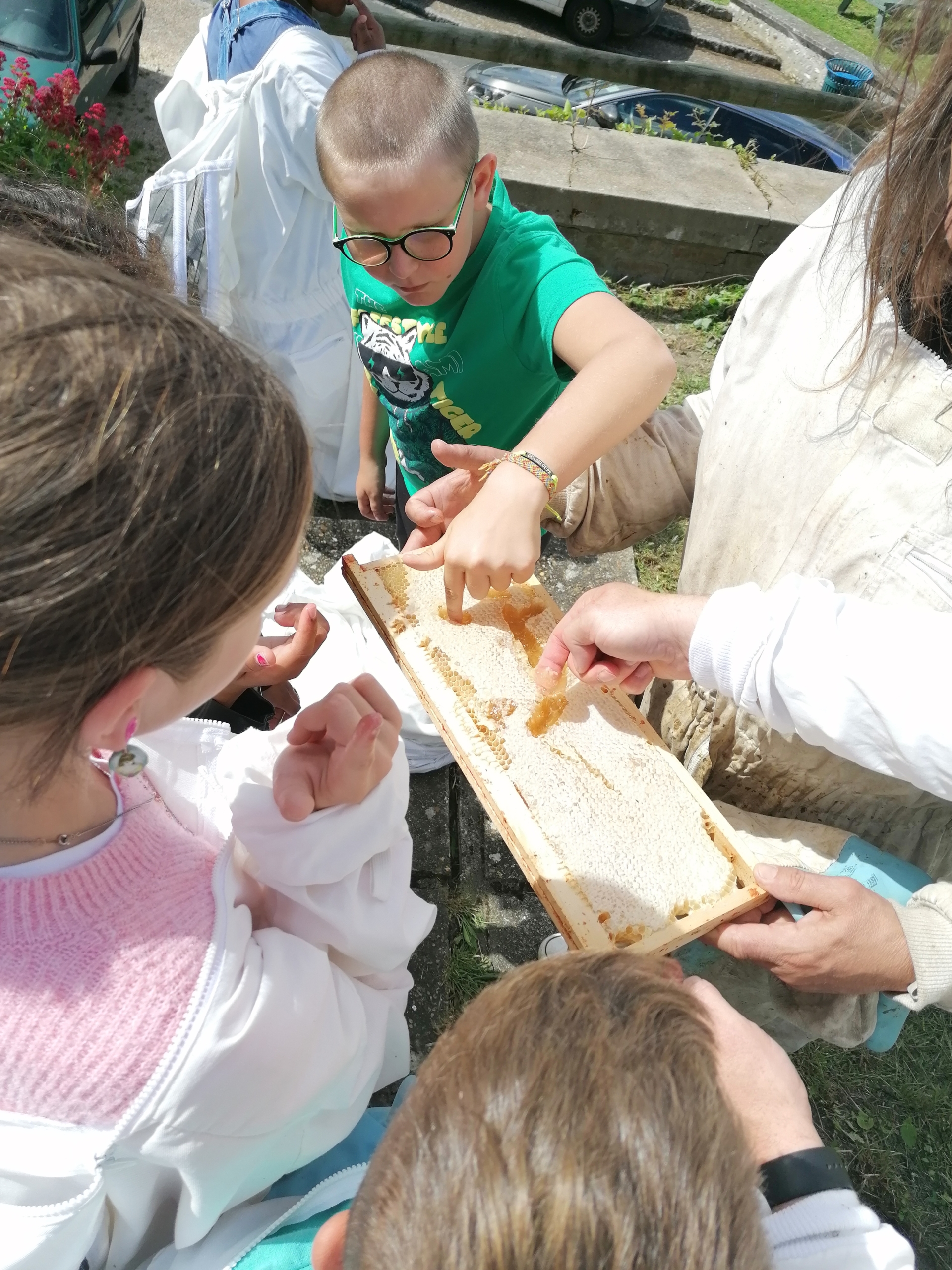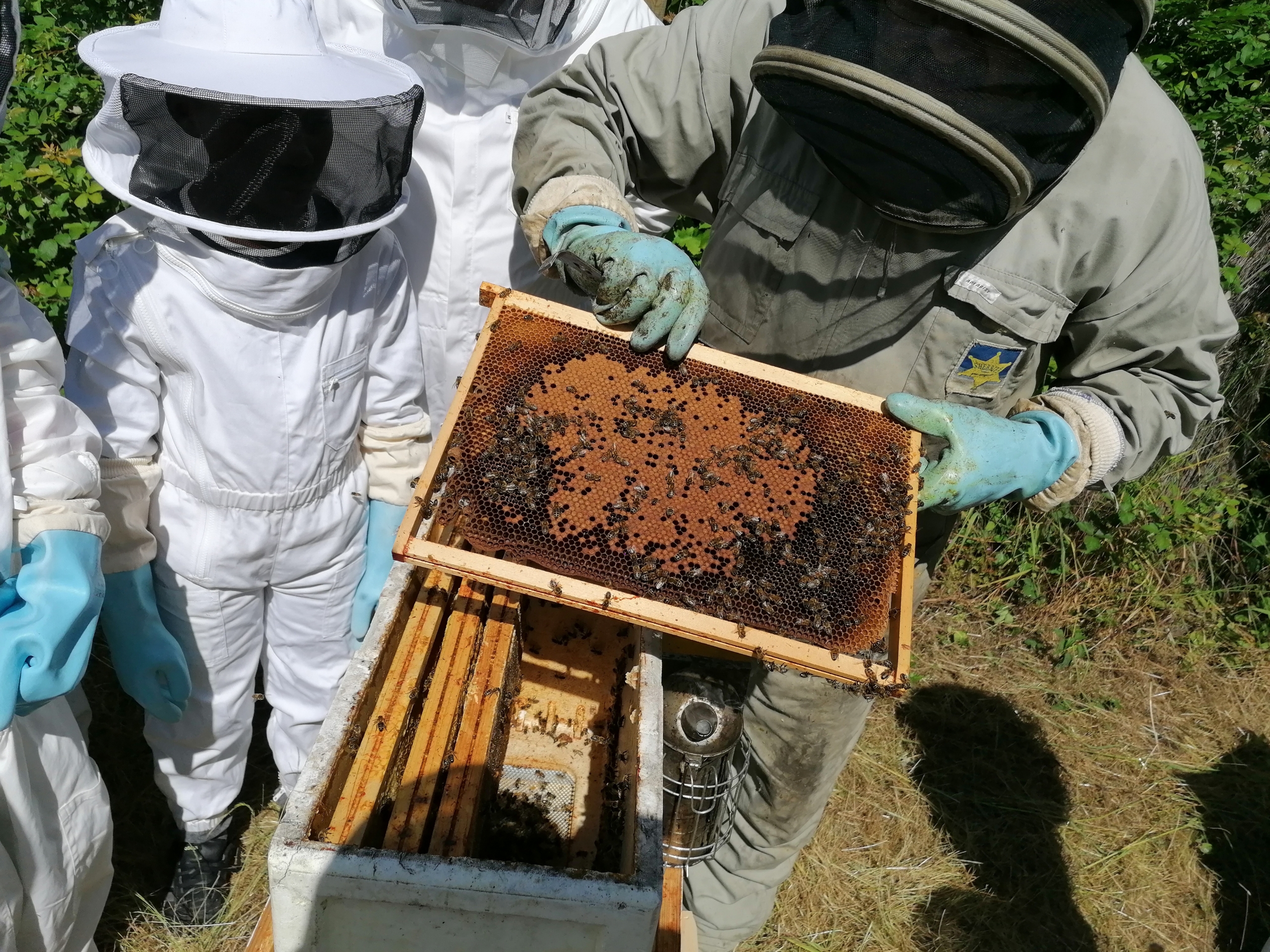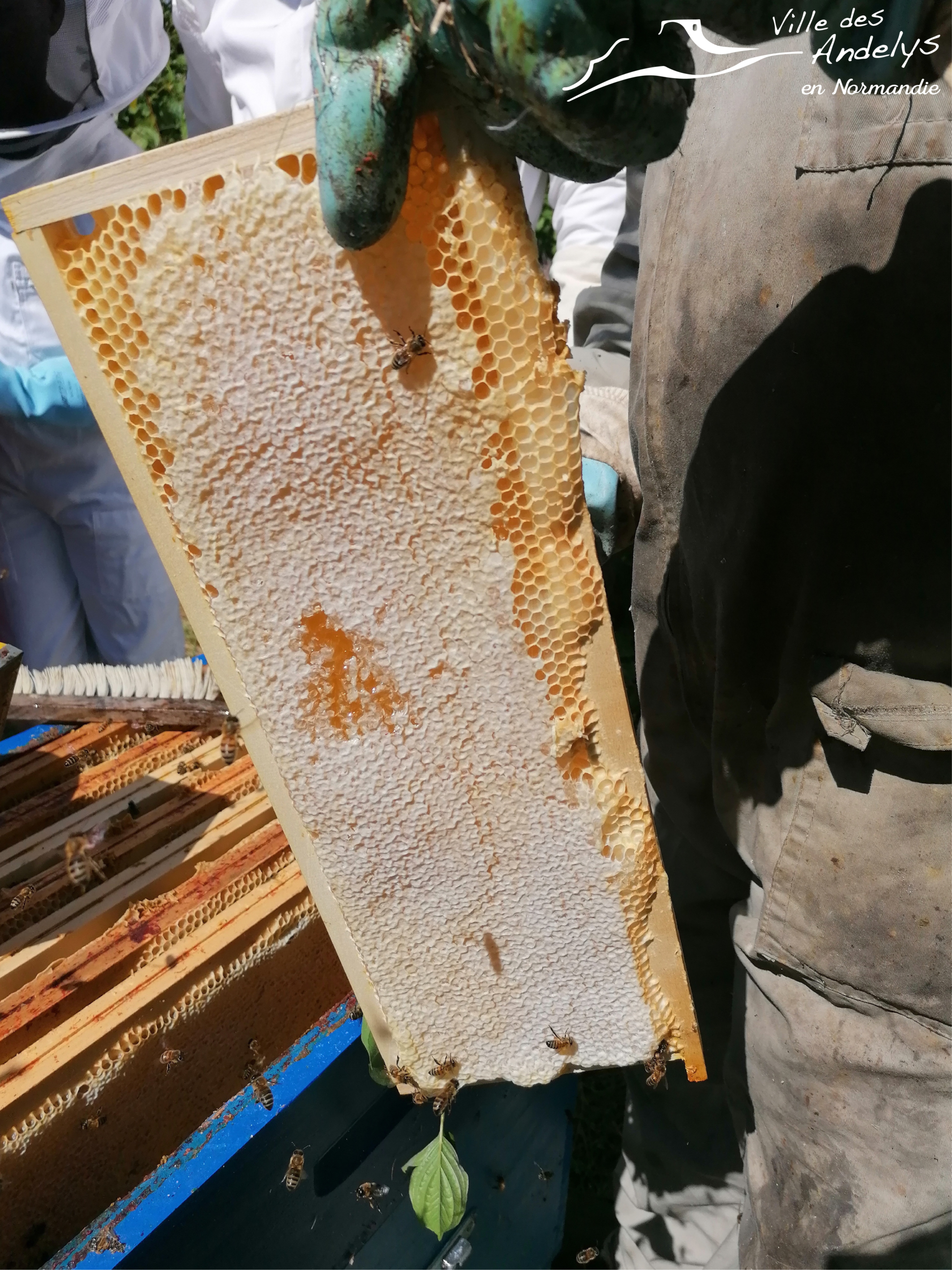 - Récolte de miel au Château-Gaillard avec notre producteur local, « Brumeau Apiculteur ».