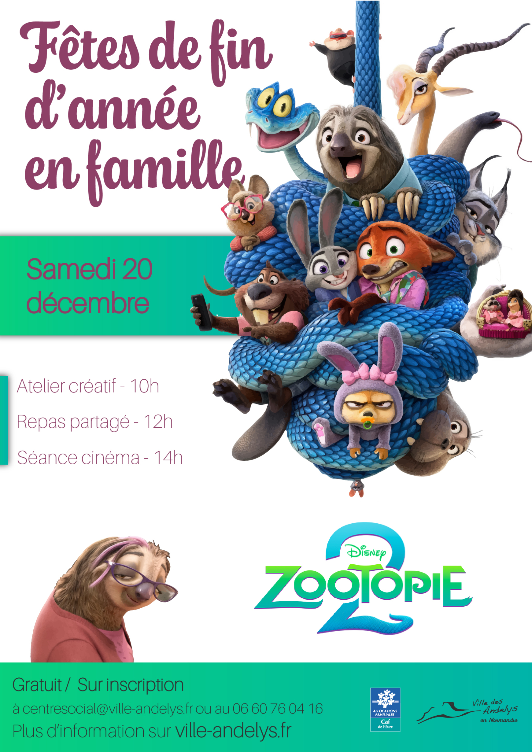 Enfants, parents et grands-parents, venez assister gratuitement à la projection du dessin animé Disney, « Zootopie 2 », samedi 20 décembre à 14h00.